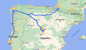 Ele consiste em um trajeto de turismo religioso que leva os fiéis até a Catedral de Santiago de Compostela, na cidade de mesmo nome, na Espanha.